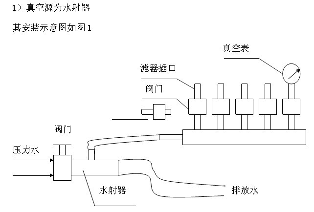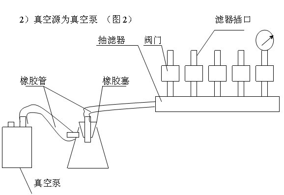 2.將濾器接桿上的橡膠塞,插入不銹鋼底座,濾器的多小孔平面上裝上浸泡的濾膜,放上不銹鋼濾器倒入水樣至相應刻線,便可進行抽濾。