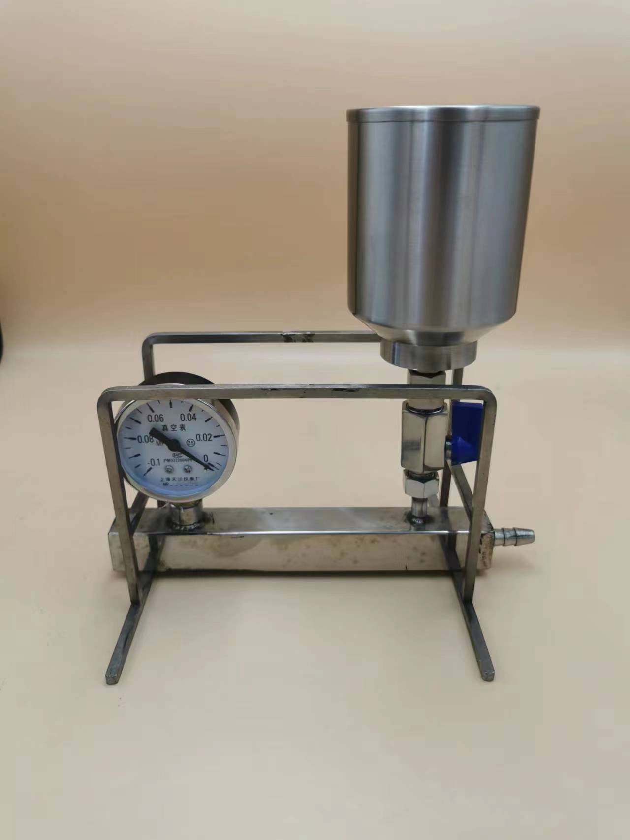 2.將濾器接桿上的橡膠塞,插入不銹鋼底座,濾器的多小孔平面上裝上浸泡的濾膜,放上不銹鋼濾器倒入水樣至相應刻線,便可進行抽濾。