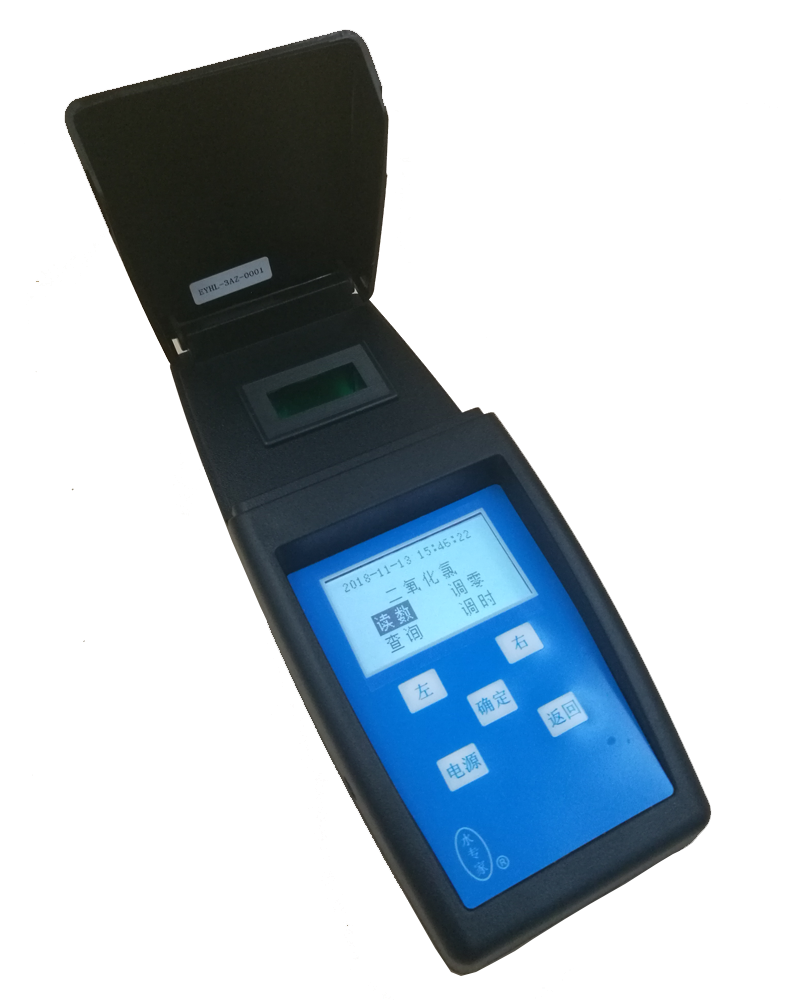 本儀表應用微電腦光電子比色檢測原理取代傳統的目視比色法。消除了人為誤差,因此測量分辨率大大提高。測量時,當被測水樣倒入試劑時,水樣將變成紅色。然后將此水樣放入光電比色座,儀表會通過比較紅色深淺從而得到二氧化氯的濃度大小。