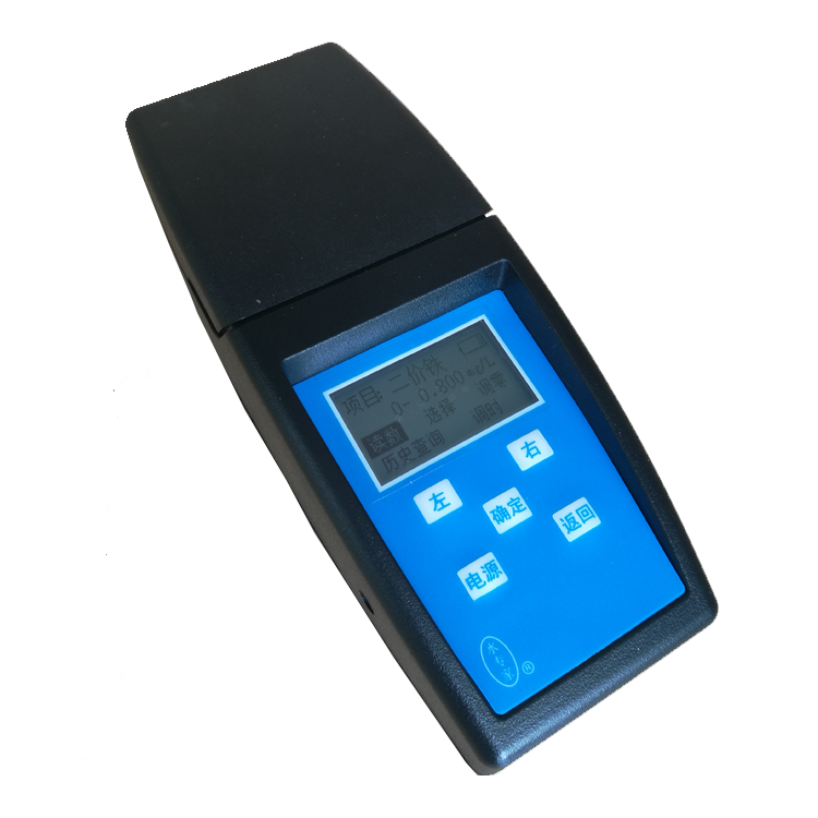 本儀表應用微電腦光電子比色檢測原理取代傳統(tǒng)的目視比色法。消除了人為誤差,因此測量分辨率大大提高。測量時,當被測水樣倒入試劑時,水樣將變成橘紅色。然后將此水樣放入光電比色座,儀表會通過比較橘紅色深淺從而得到鐵的濃度大小。